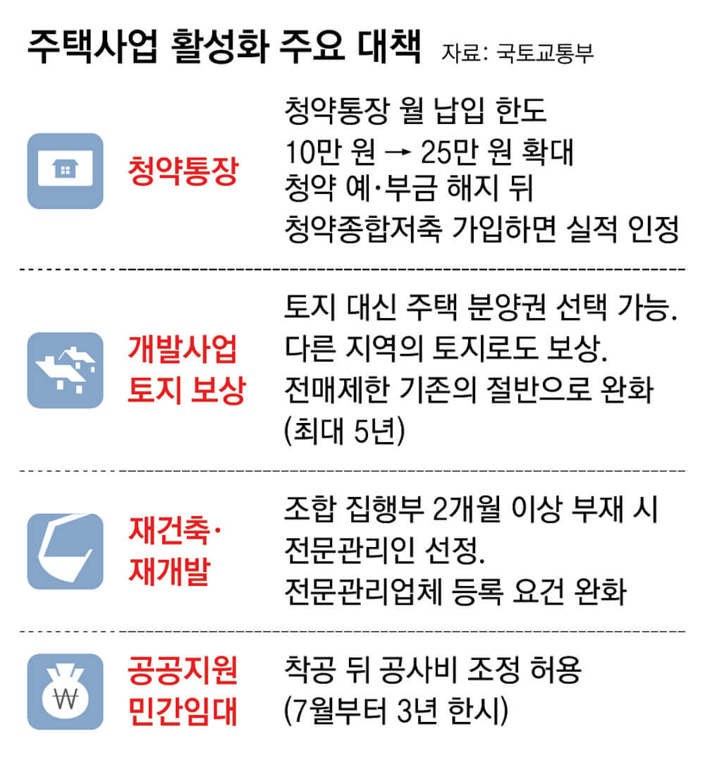 • 청약통장 금리: 0.3% p인상 (2.0~2.8%에서 2.3~3.1%로)